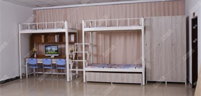 還可以選擇塑膠擋板,在上鋪再也不擔(dān)心掉小物品;防滑紋的樓梯腳踏板,防滑,還有夜光踏板,晚上也可以清楚看到。上述我說的是常規(guī)的宿舍家具雙層鐵床,艾尚宿舍家具還可以再方便一點,不僅有雙層鐵床,還有公寓床,很多的配套產(chǎn)品。
