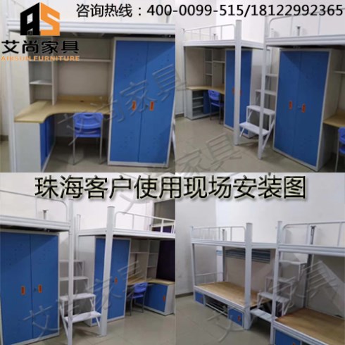 公寓床系列可以靈活多變,備有多款色彩可供選擇,配有不同配件,如底資料柜、邊桌、抽屜柜、書柜,可塑造出不同類型的學習與休息環(huán)境。一般的外形尺寸是1980*900*2080mm,是由床、書柜、衣柜、書桌和梯架組成。書柜和衣柜連接在床架床腿內側,書桌將書柜、衣柜連在一起,床架有書柜的一頭安裝有梯架,床架的另一頭與梯架同側有護欄,書桌的桌面下有鍵盤支架和抽屜架。由于床是立體空間組合,不僅節(jié)省了空間,而且整齊美觀,又便于管理。