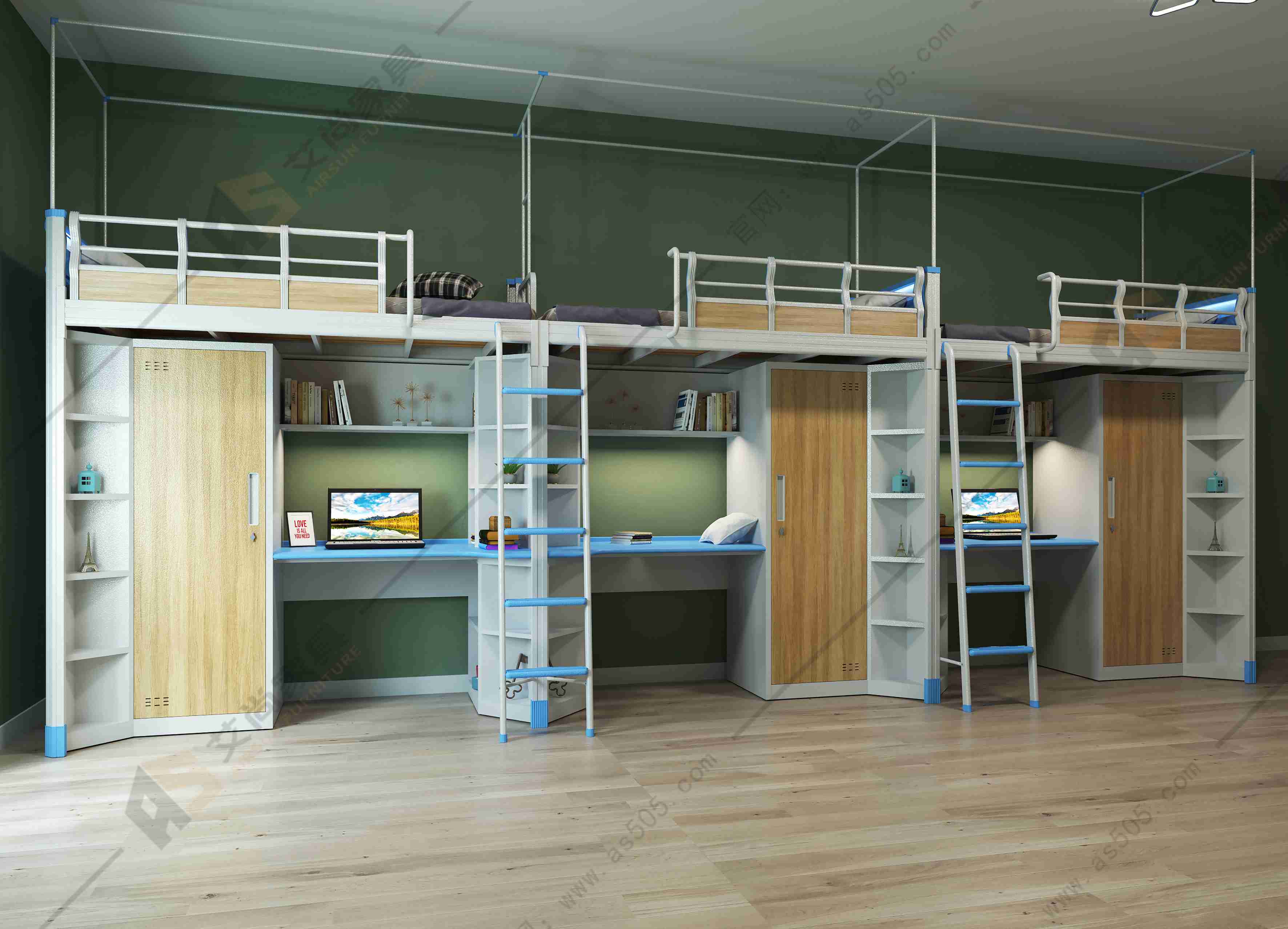 大學生宿舍公寓床能夠廣泛運用于學校、企事單位、單身公寓、青年旅館等場所,床和櫥柜是組合式,包括床、書桌、衣柜、儲藏柜等,空間利用率大的宿舍家具,不僅節(jié)省空間,而且美觀實用。