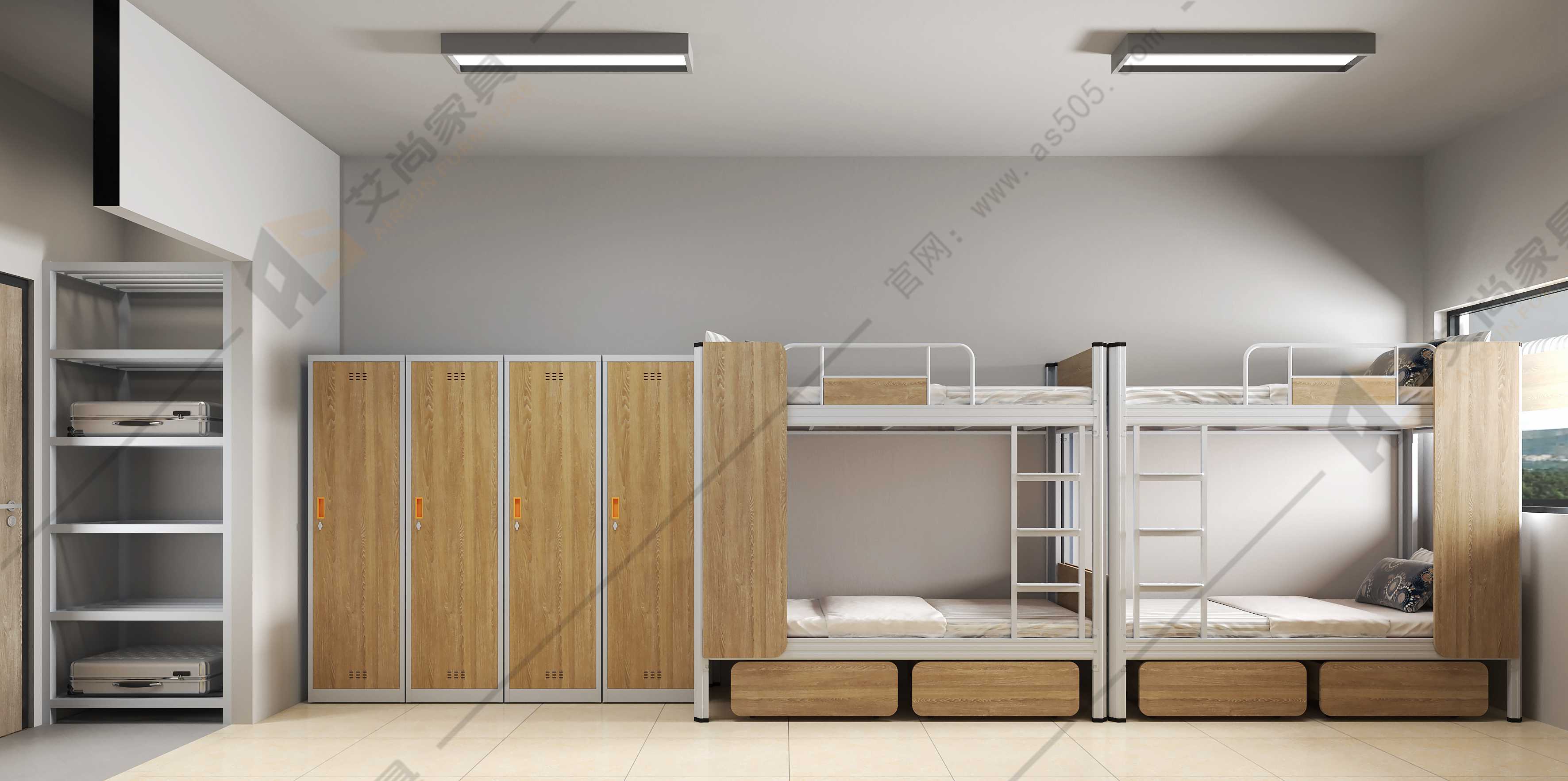 上下鐵鋪床護(hù)欄的尺寸設(shè)計(jì)須以安全為主,上鋪?zhàn)o(hù)欄高度達(dá)300mm,艾尚宿舍上下鋪新款護(hù)欄高度為350mm,這樣能大大降低墜床的風(fēng)險(xiǎn)。但是不管是什么樣的尺寸,都需要合理利用宿舍空間,才能讓宿舍空間更加整潔明亮。