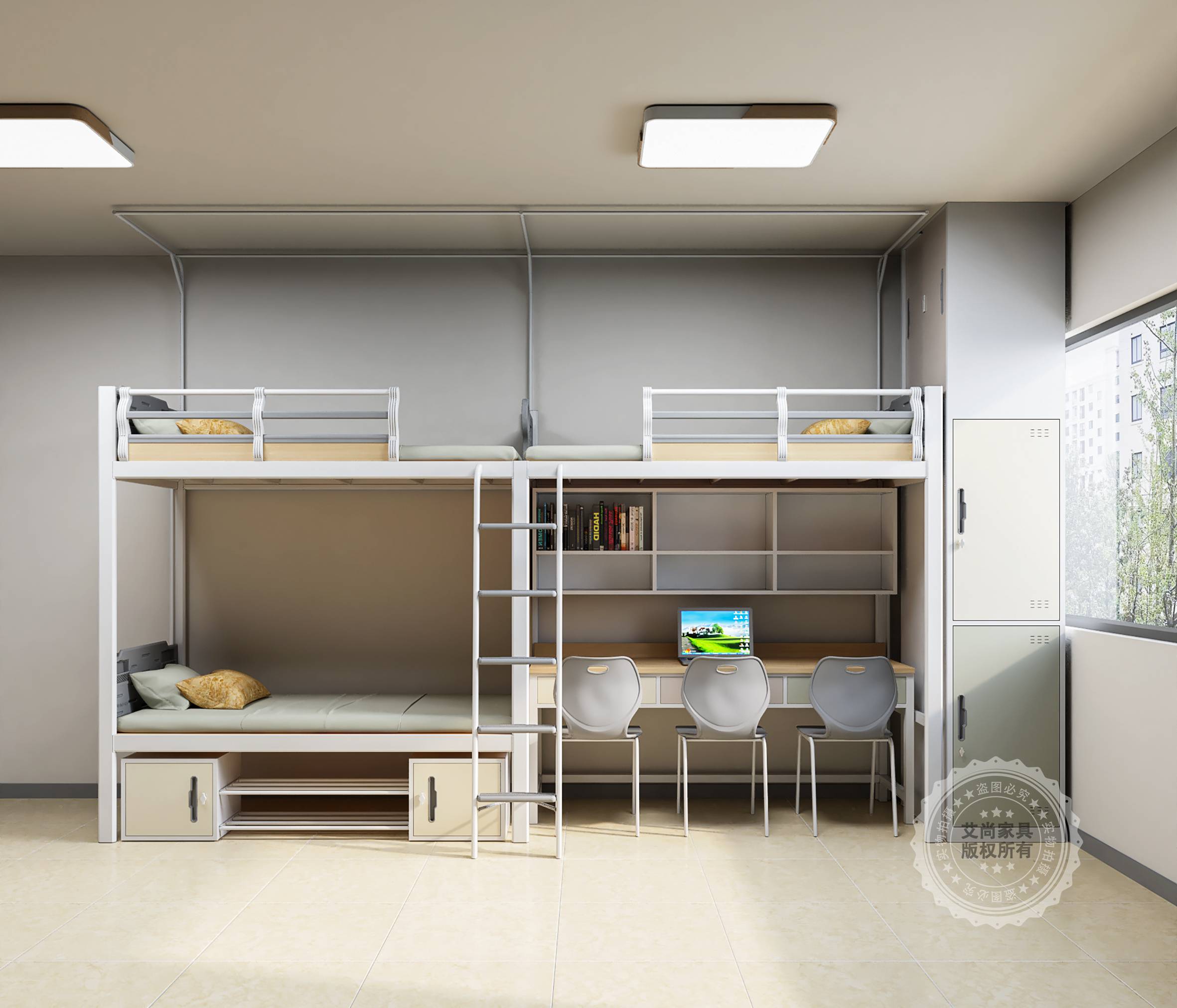 宿舍空間有限,但需求無限!定制服務可以根據(jù)宿舍的實際尺寸,靈活設計床的長、寬、高和結構。比如,艾尚家具的上床下桌一體床、兩連體床,不僅能節(jié)省空間,還能為學生打造專屬的學習區(qū)和儲物區(qū),瞬間讓宿舍變得寬敞又整潔!